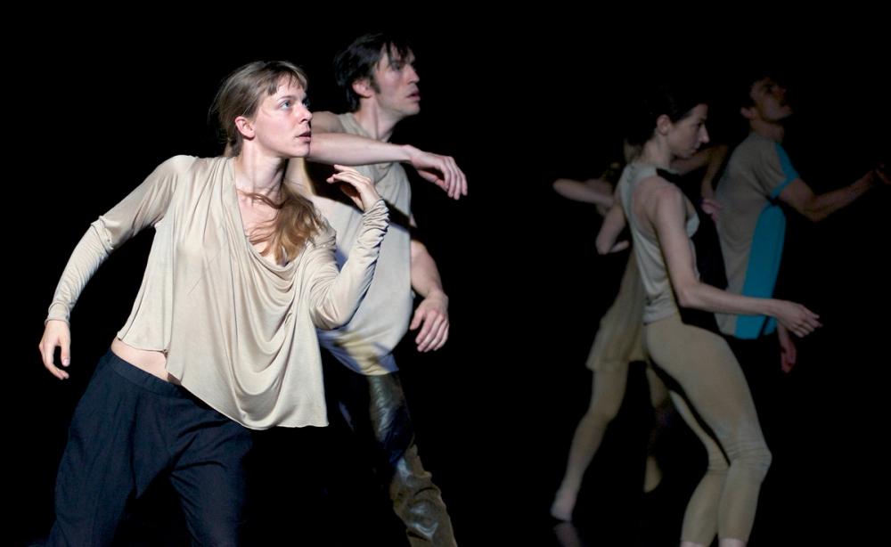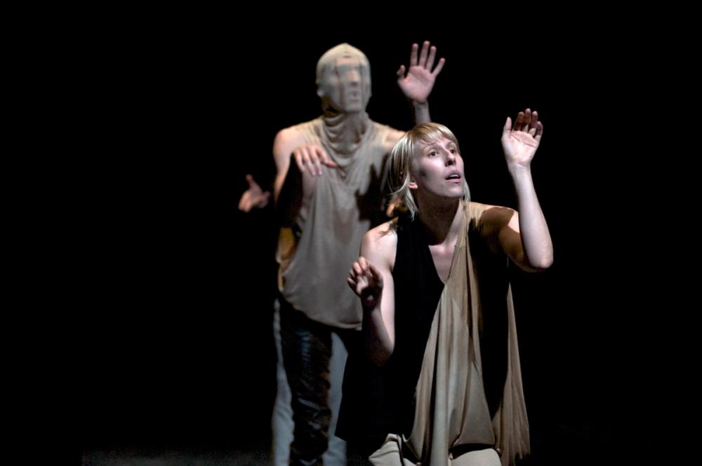 „Haaaaahh-Ächzen, Stöhnen, Keuchen. Die ruhelosen Seelen leiden: Sie wollen ihren Körper zurück. Die Köpfe verhüllt, tragen die sechs Tänzer*innen des MichaelDouglas Kollektivs in der Kölner Halle Kalk ihre schwarze Schattenrisse herum. Geisterstunde auf der Tanzbühne.