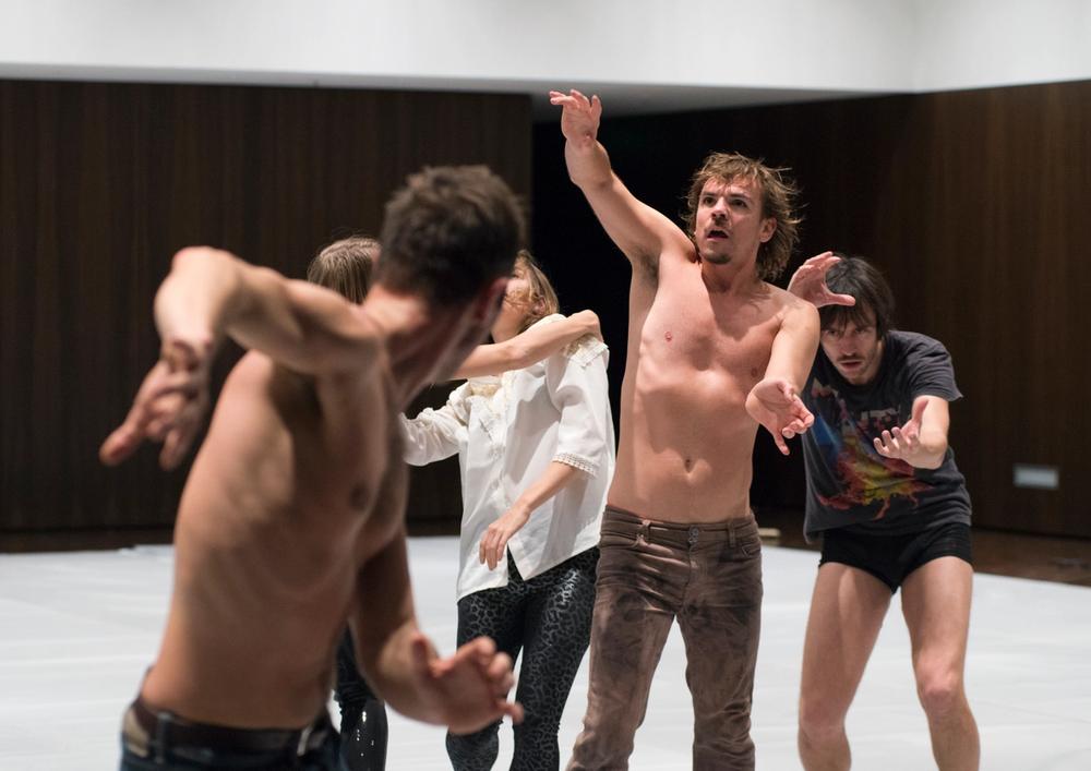 The term excess (from Latin: "to step out of", "to go beyond") refers here to its two meanings of transgression and debauchery. For this work, the MichaelDouglas collective researched, among other places, the Rautenstrauch-Joest-Museum in Cologne for possibilities of communication and representation of physical forms of transgression. The dancers were particularly interested in sacred, cultic and spiritual practices such as prayer, retreats, rites, meditation, diets and their physical manifestations. However, the project also focused on forms of transgressing the boundaries of profane idols such as excessive exercise and work, drug use and intoxication. Idols live out, quasi vicariously, real experiences and states that others only imagine, think up or dream of.